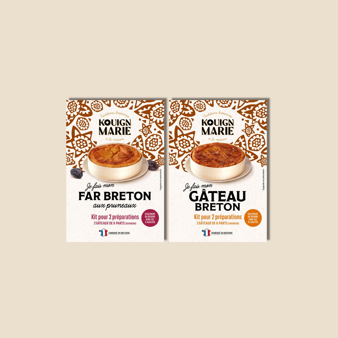 Chez Kouign Marie, nous vous proposons des coffrets de préparation permettant à tous de recréer chez soi les gourmandises bretonnes, de manière simple, authentique et avec la certitude d’un résultat fidèle aux véritables saveurs bretonnes.